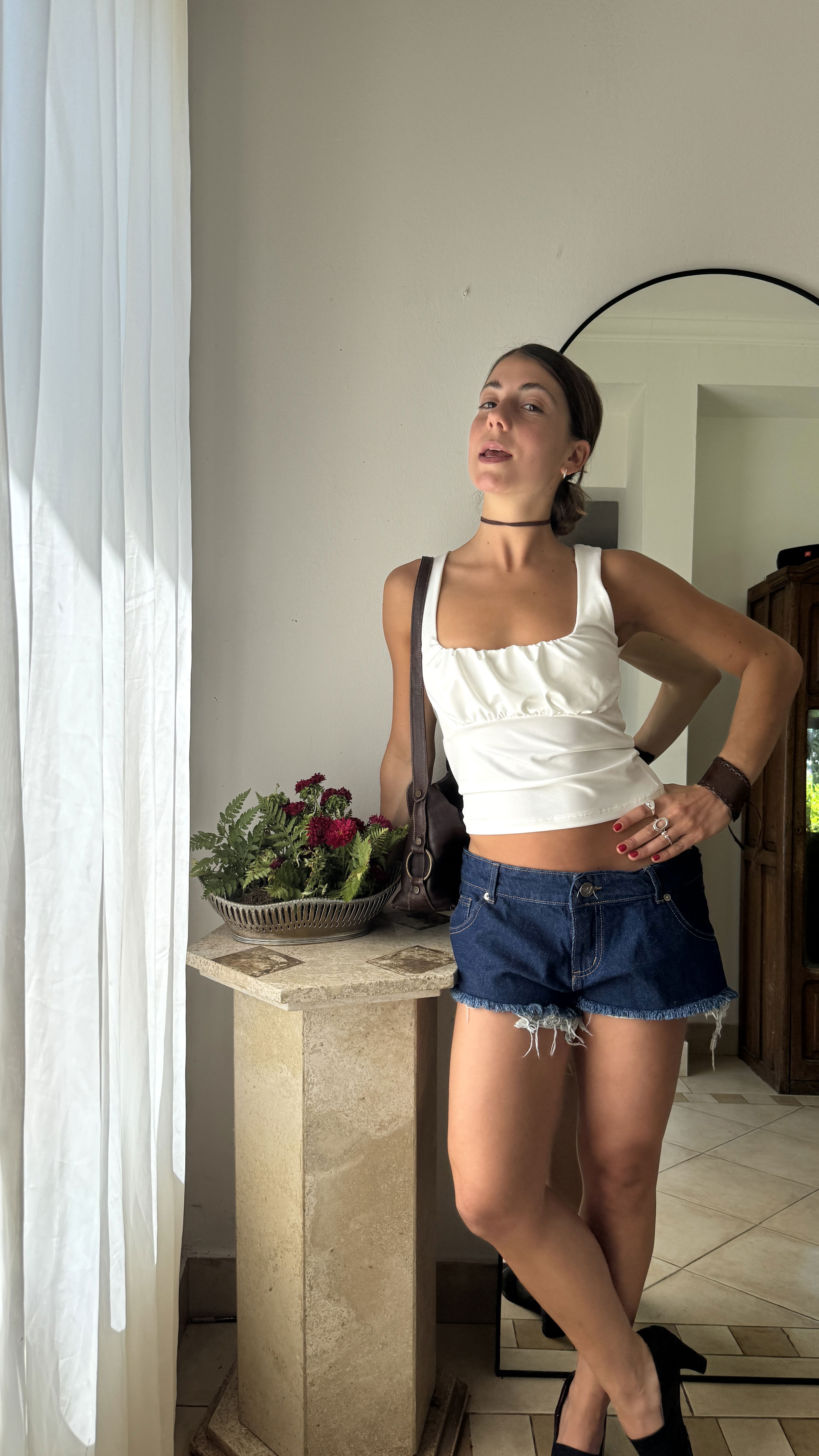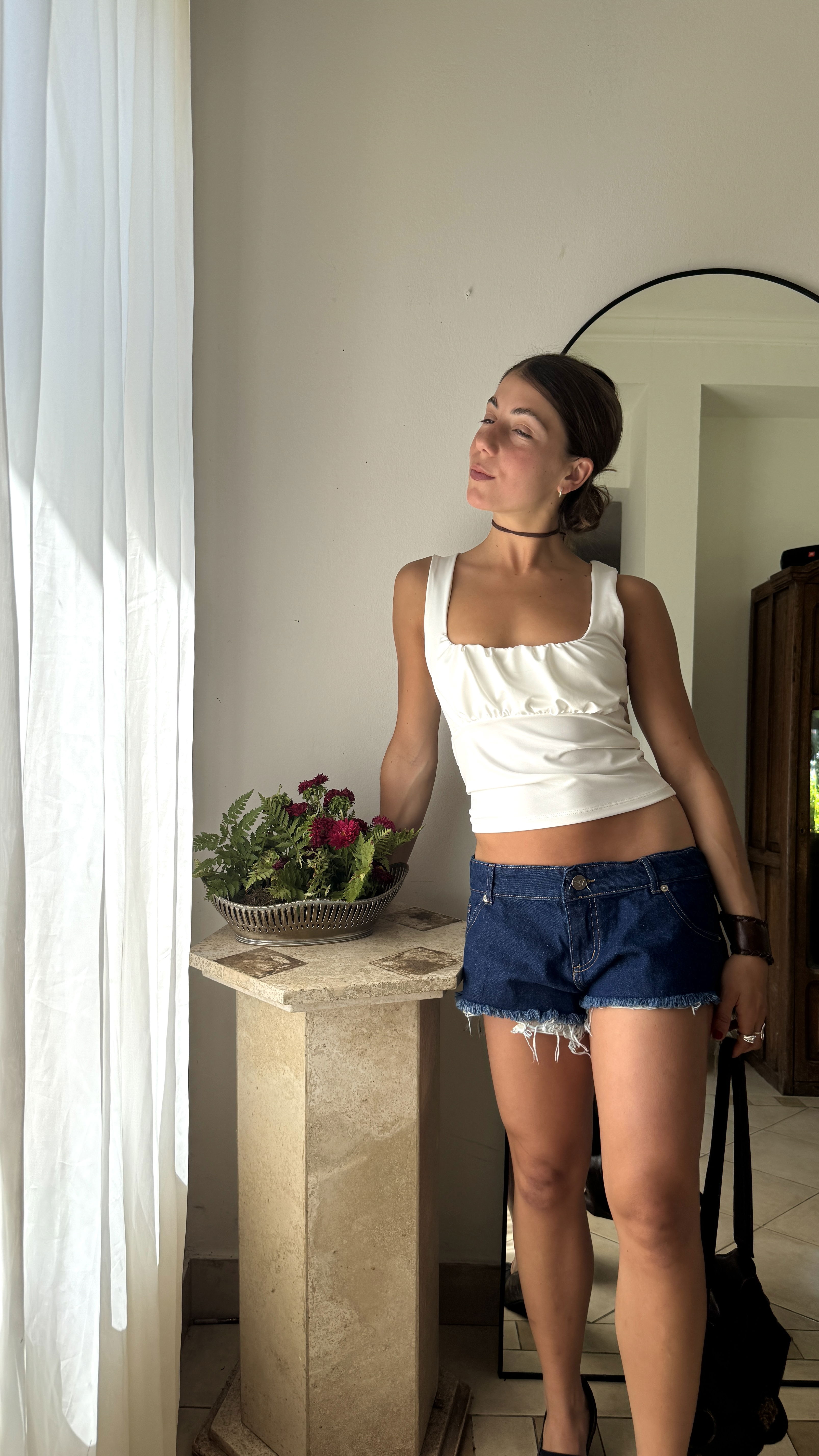 Short de jean micro con lavado, con detalle de desflecado en su terminación. Cintura con pasacintos, cartera de cierre y botón metálico personalizado. Dos bolsillos delantero con relojero y remaches y dos bolsillos clásicos traseros. La prenda lleva proceso artesanal de lavado en toda la prenda. Cada uno de estos artículos son elaborados completamente de manera artesanal, lo que los distingue unos de otros. Los tonos en el lavado pueden variar desde claros hasta oscuros.