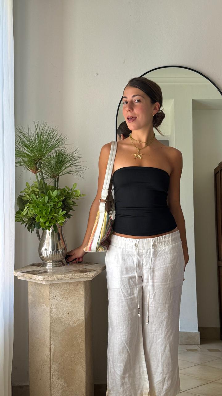 Top strapless confeccionado en microfibra suave y elástica, que se adapta perfectamente al cuerpo brindando comodidad y soporte. Diseño liso y minimalista, con elástico interno en la parte trasera para un ajuste seguro. Largo a la cadera y terminaciones prolijas para un acabado limpio. Disponible en cuatro colores: negro, blanco, manteca y bordó.