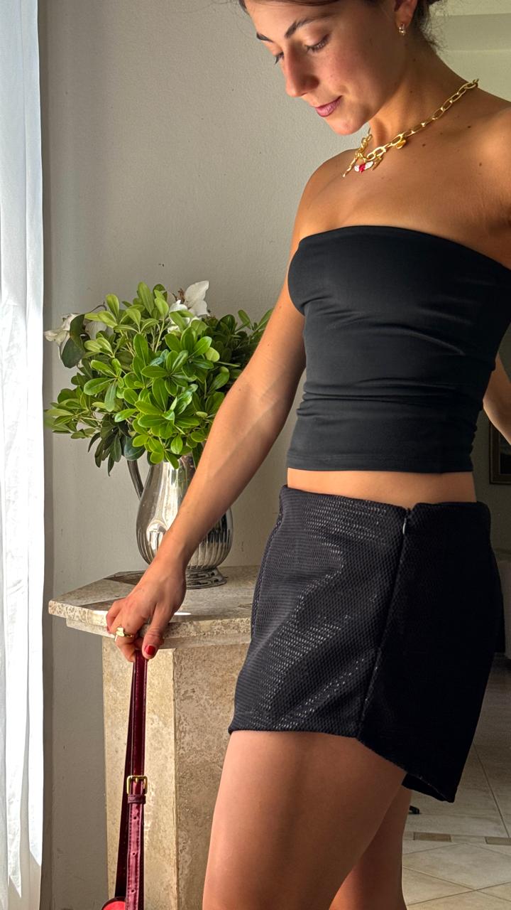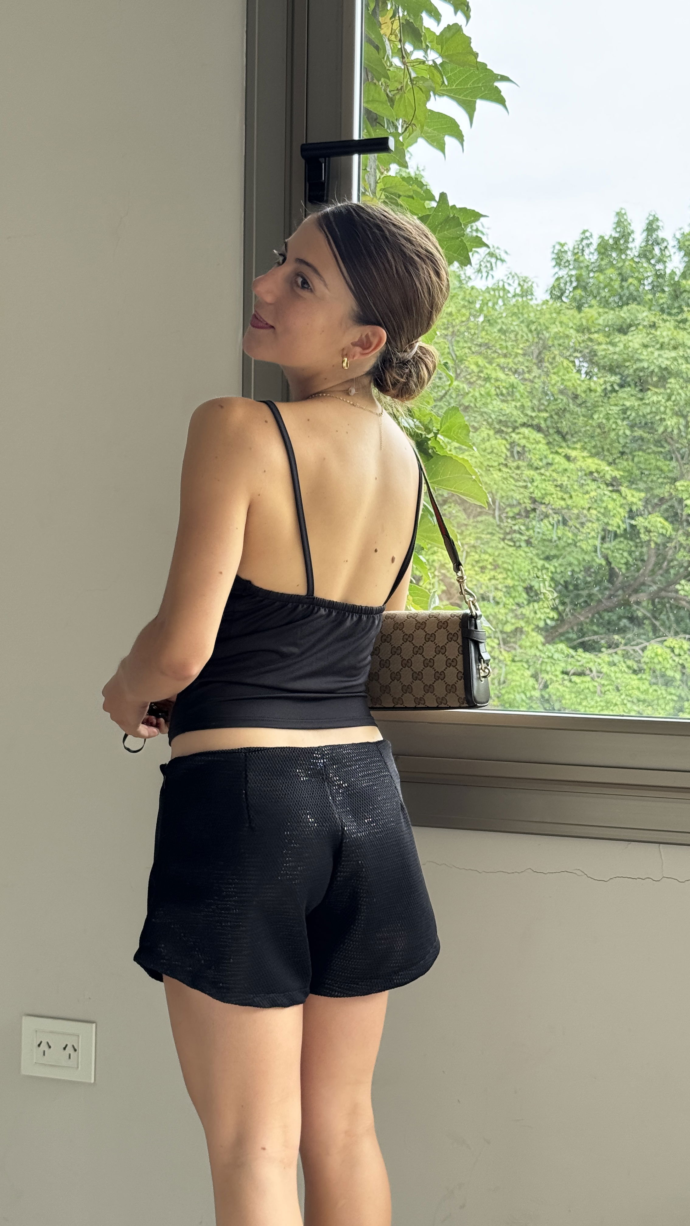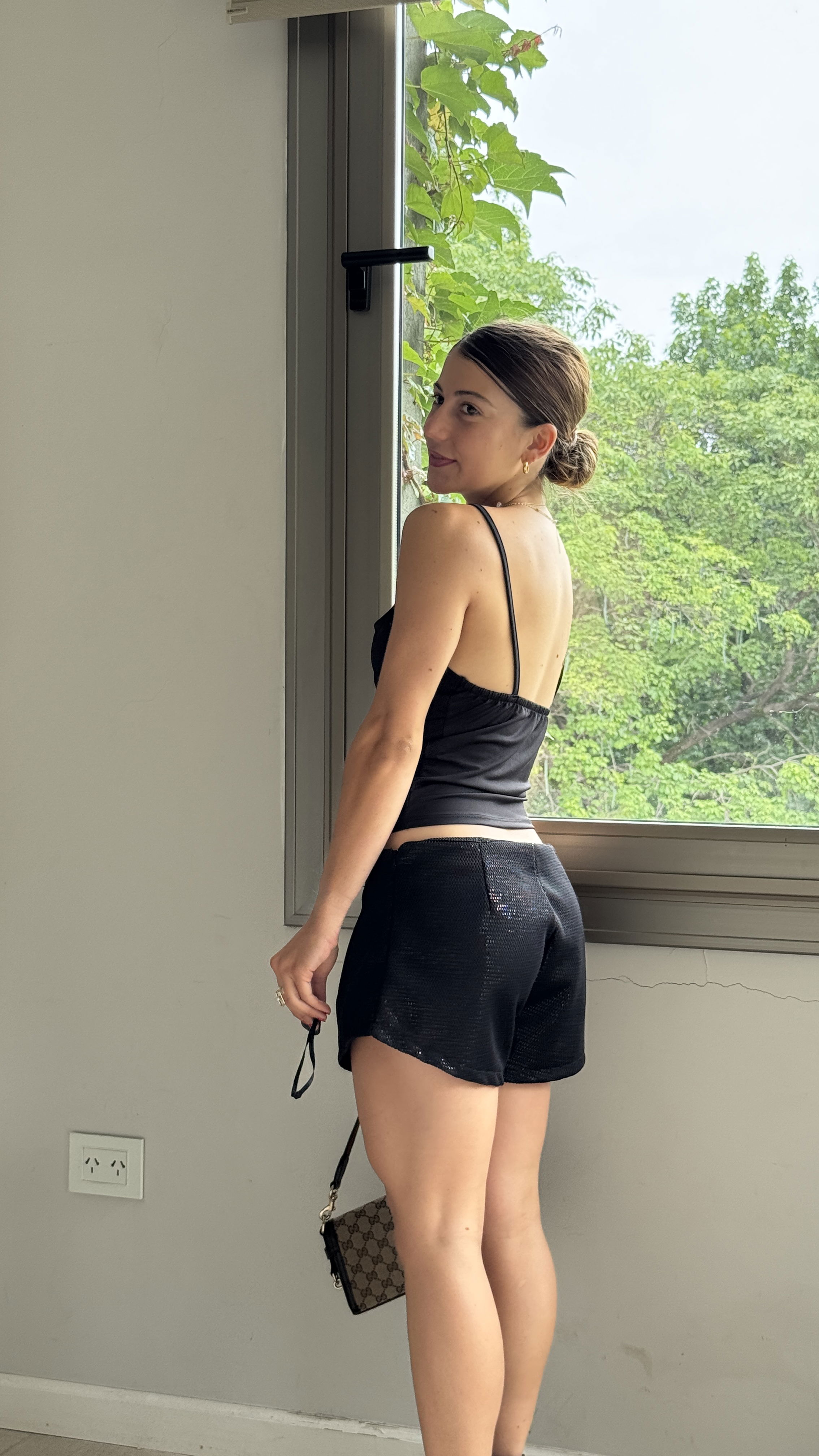Micro short confeccionado en lentejuela, con un delicado brillo que aporta un aire elegante y festivo. Su diseño corto y fluido ofrece comodidad y libertad de movimiento, perfecto para ocasiones especiales o para sumar un toque llamativo a un look casual. Cuenta con cierre invisible en el costado para un acabado prolijo y sofisticado.
