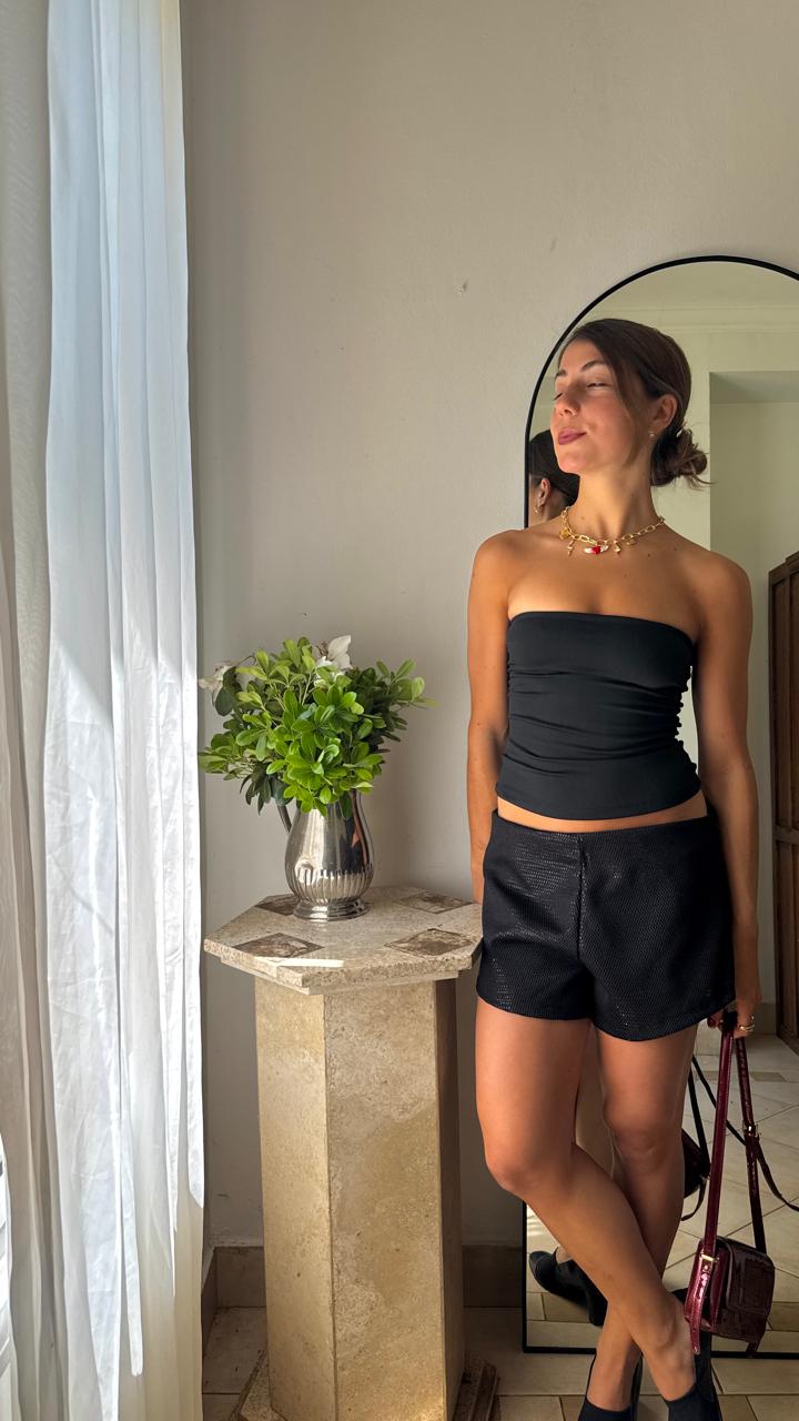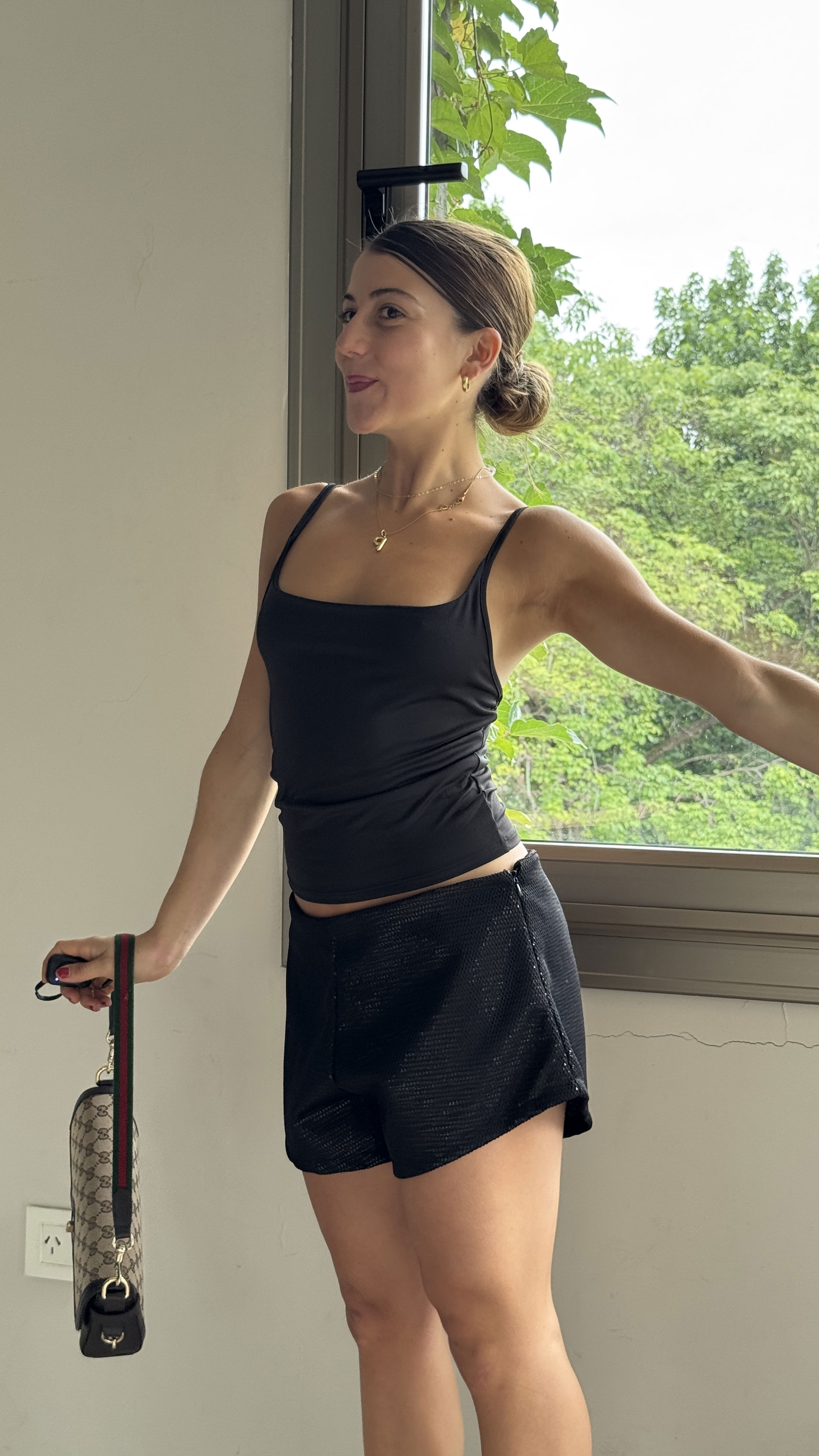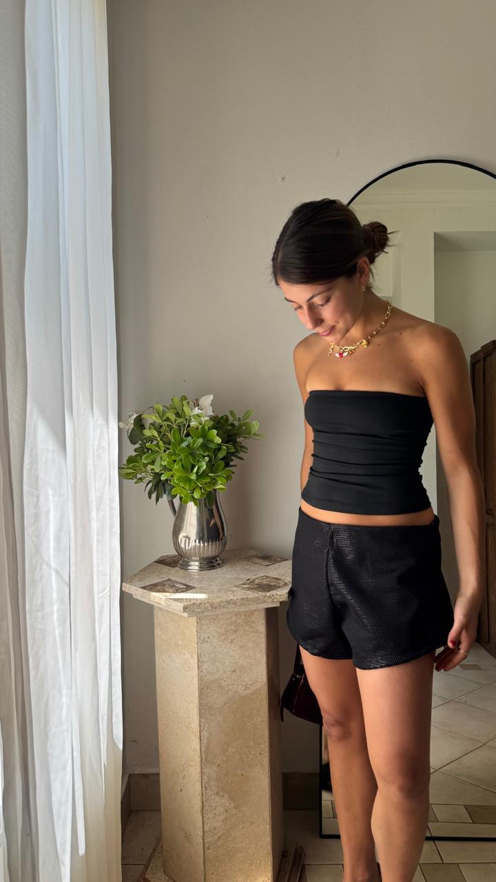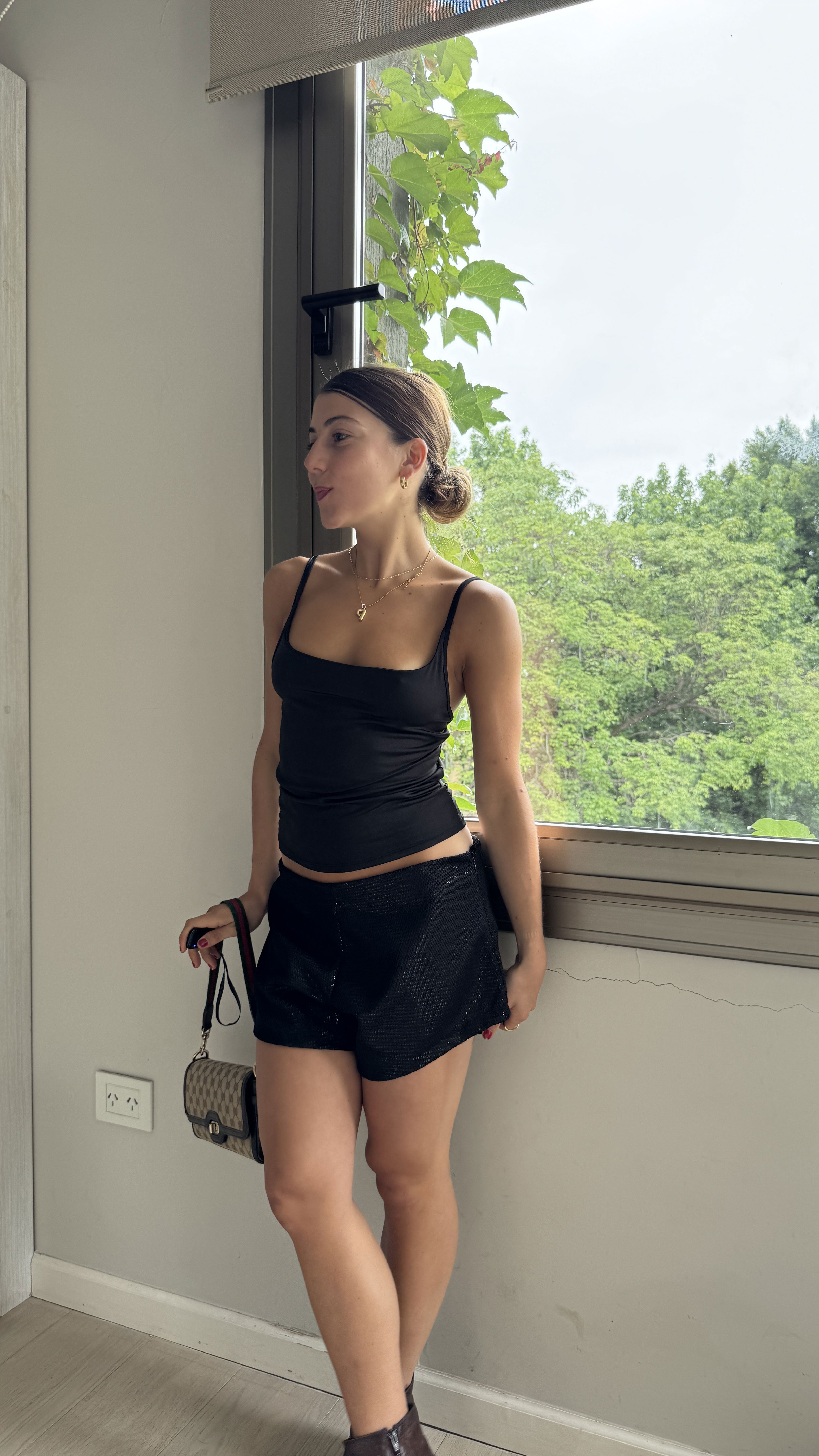 Micro short confeccionado en lentejuela, con un delicado brillo que aporta un aire elegante y festivo. Su diseño corto y fluido ofrece comodidad y libertad de movimiento, perfecto para ocasiones especiales o para sumar un toque llamativo a un look casual. Cuenta con cierre invisible en el costado para un acabado prolijo y sofisticado.