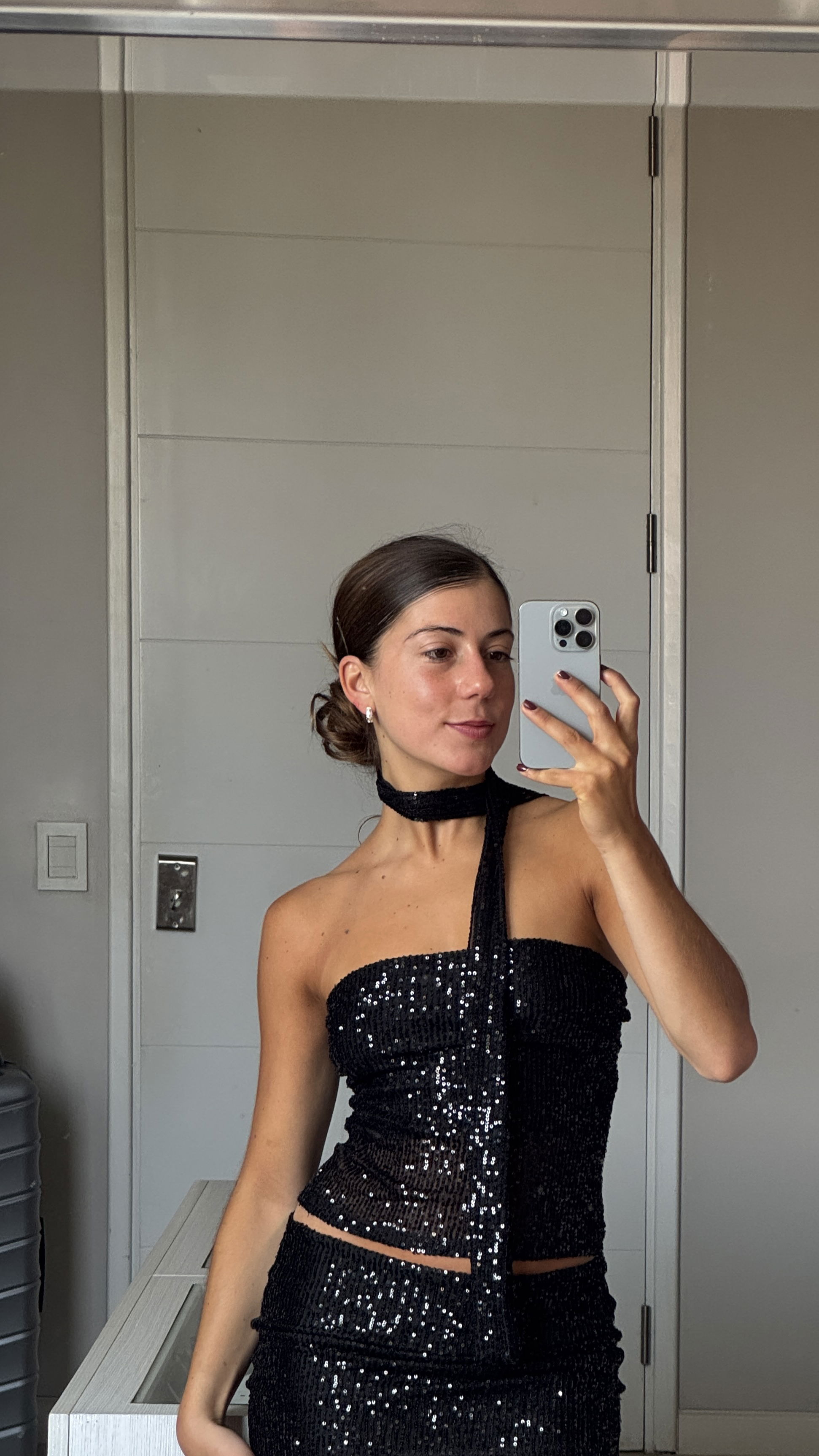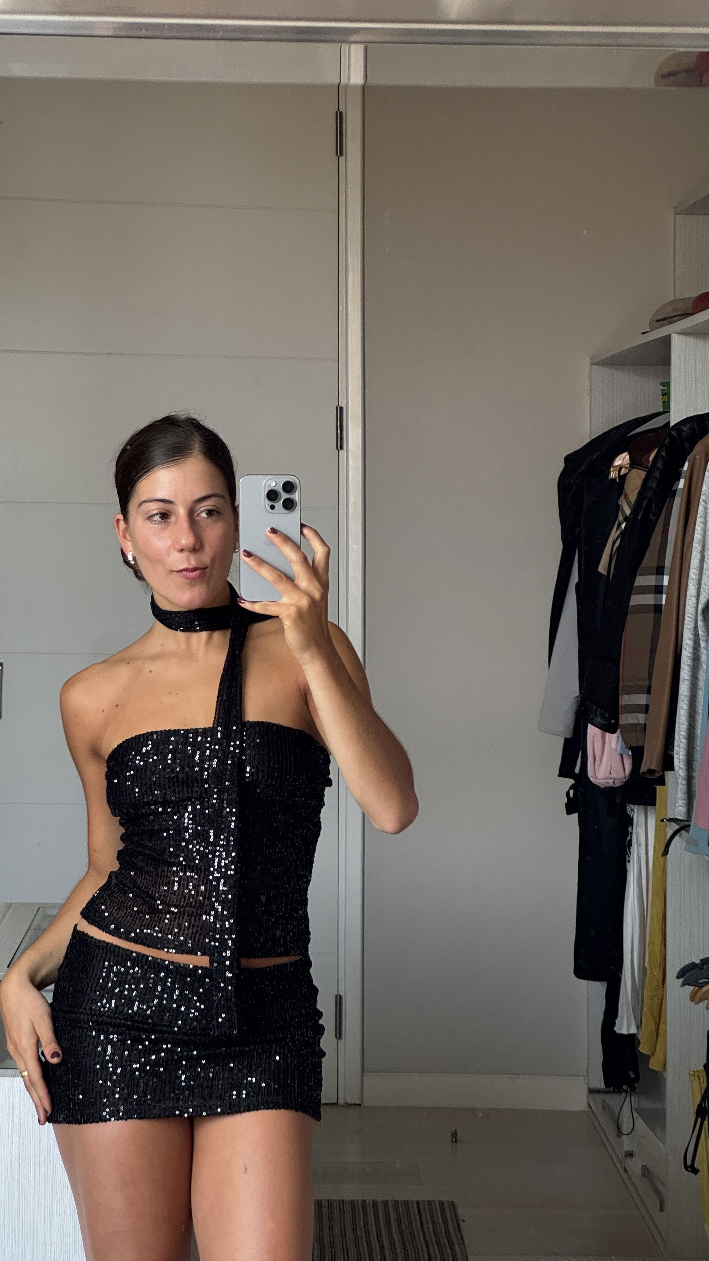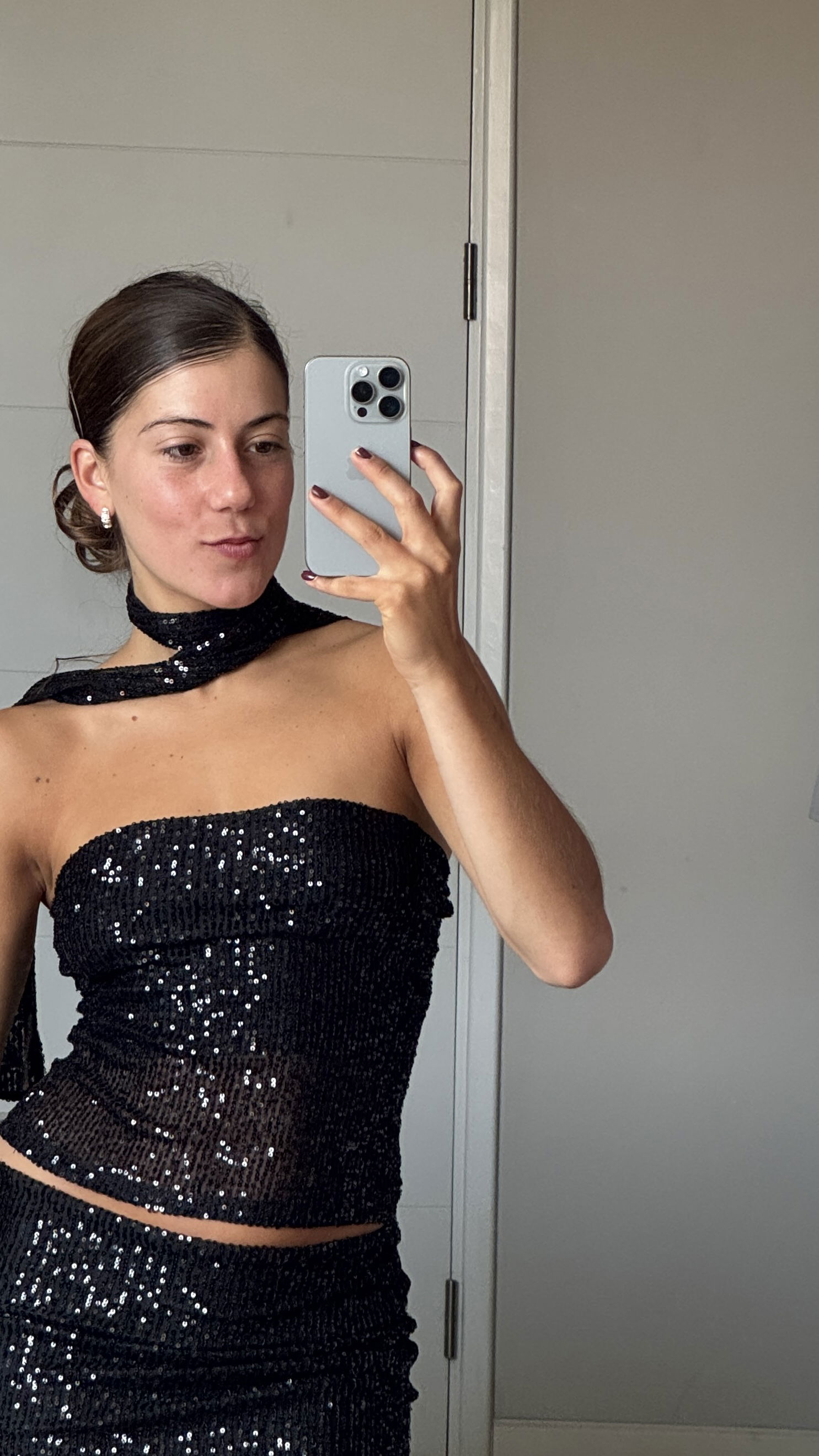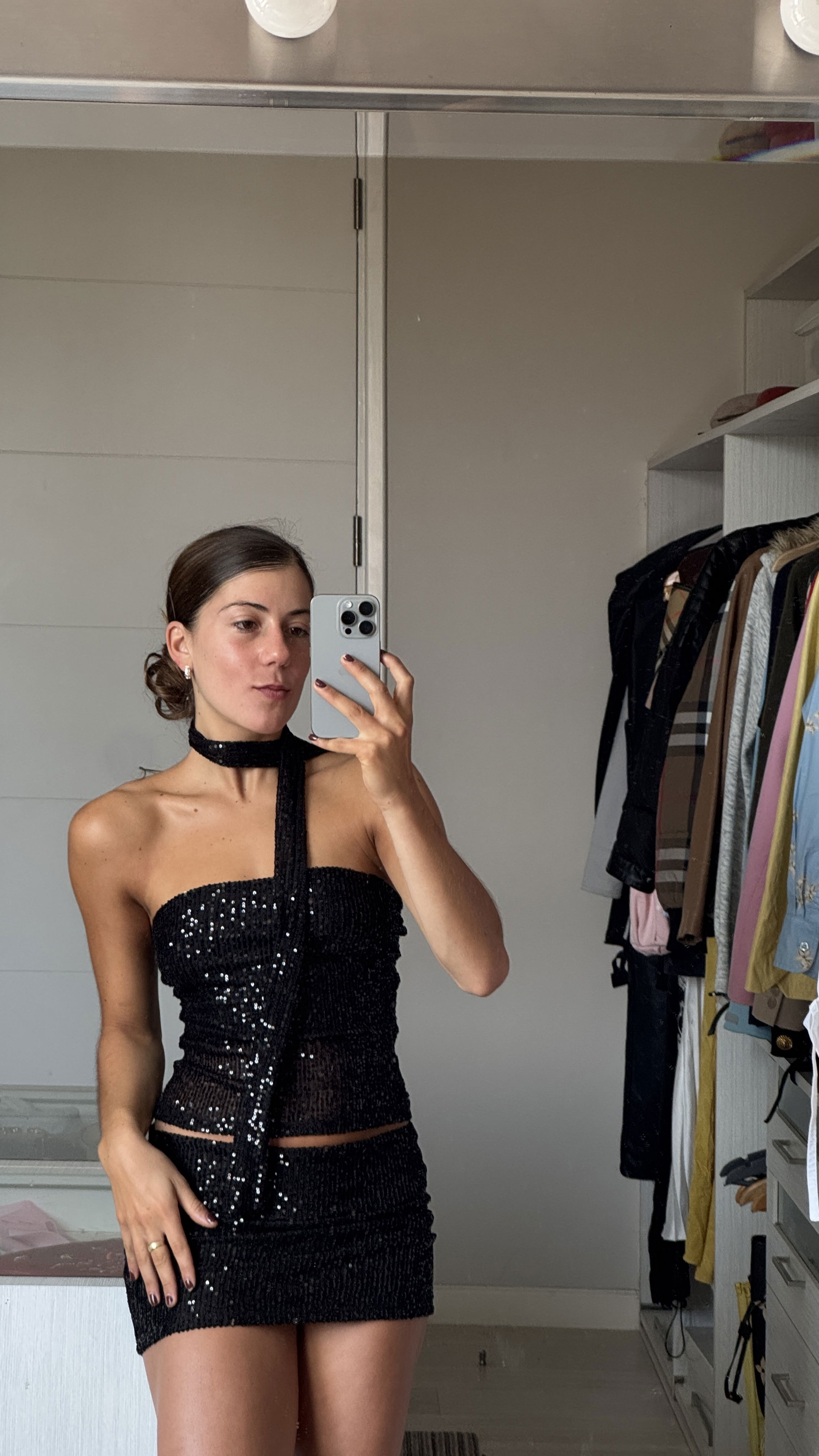 Top Lentejuelas Strapless con Bufandita - Talle UNICO.