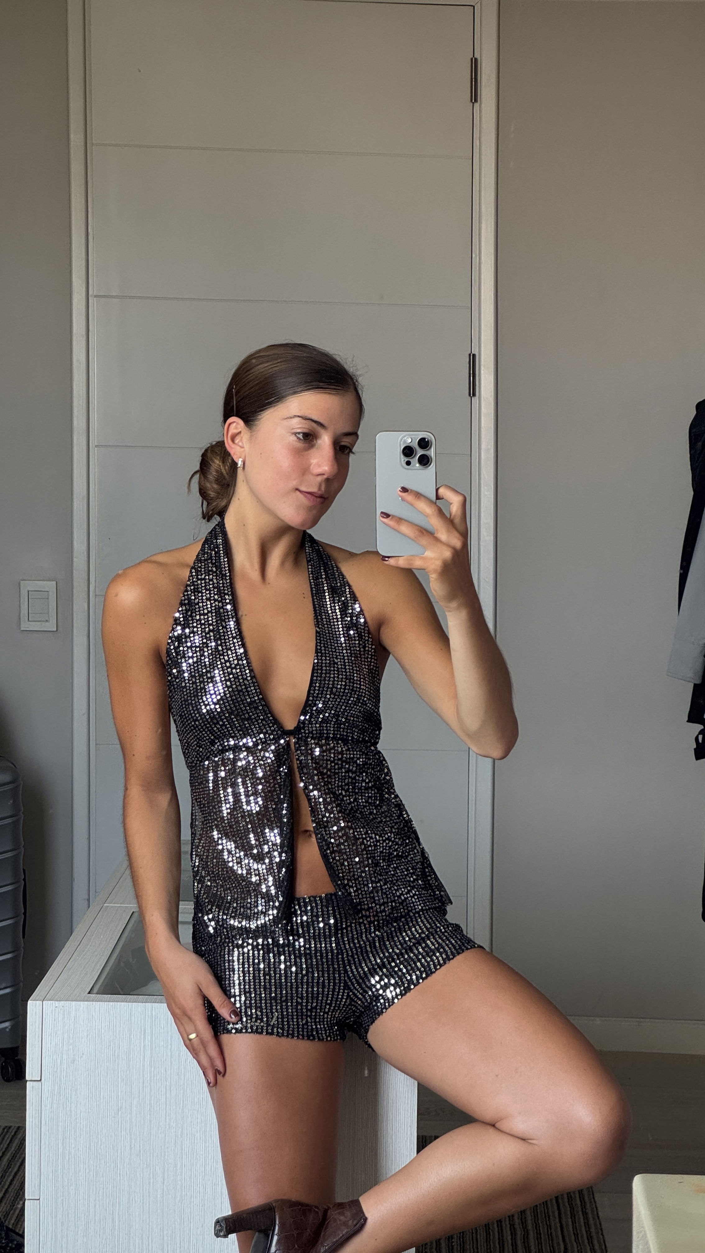Top Lentejuelas Marilyn p/Atar - TALLE ÚNICO.