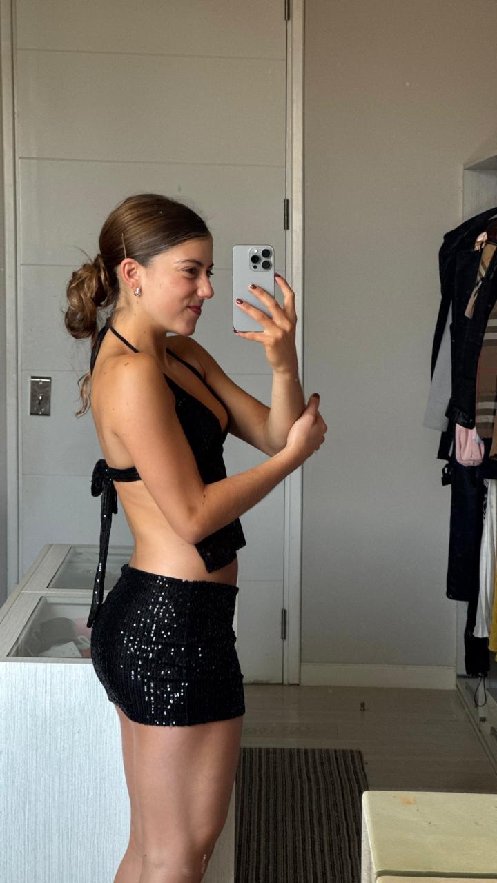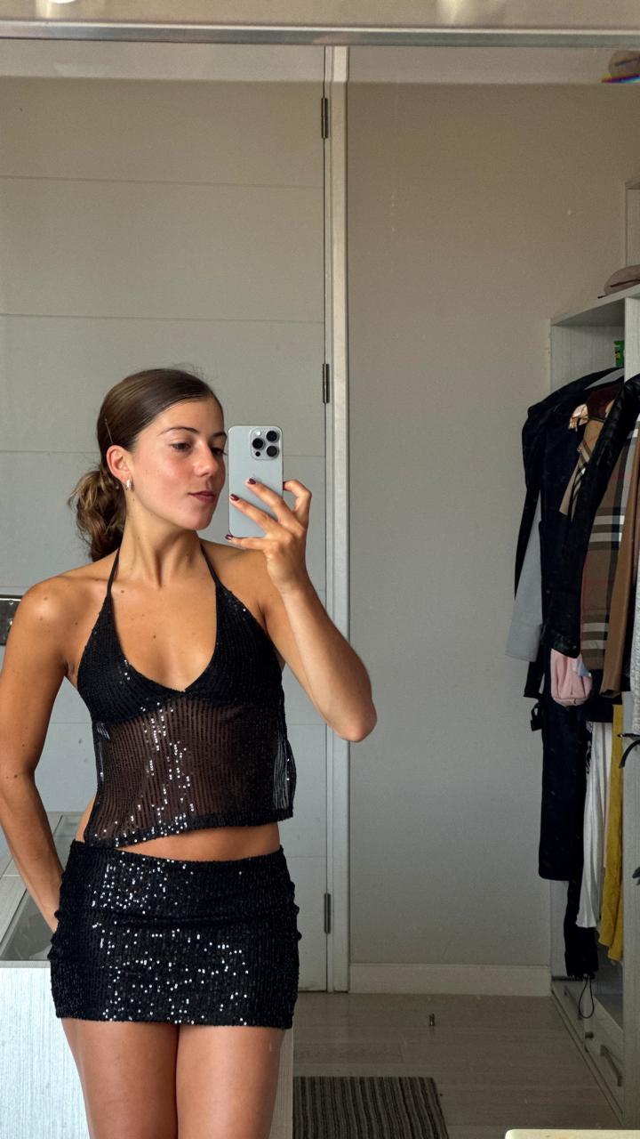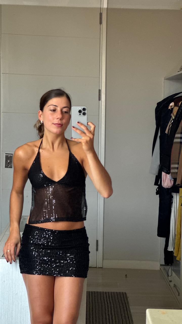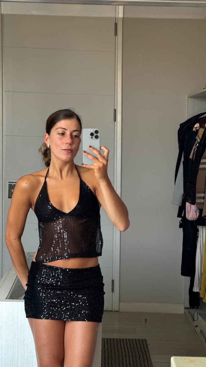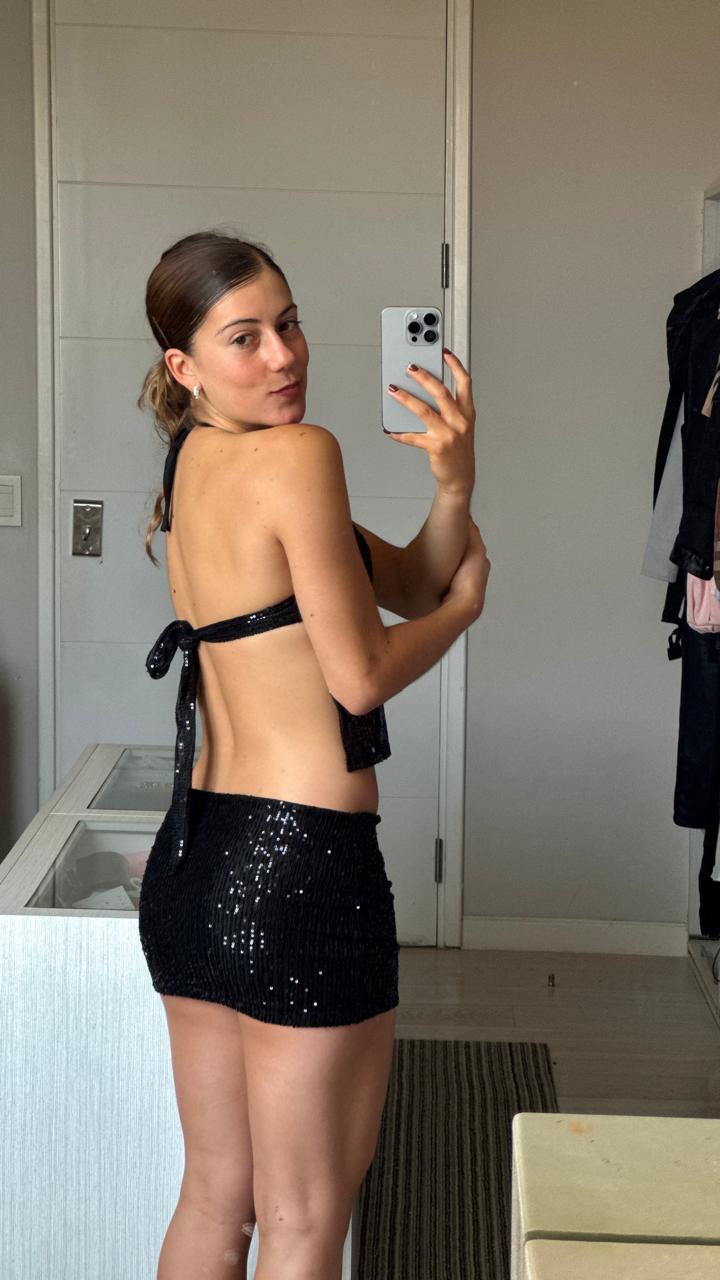 Top Lentejuelas Escote V p/Atar- Talle UNICO.