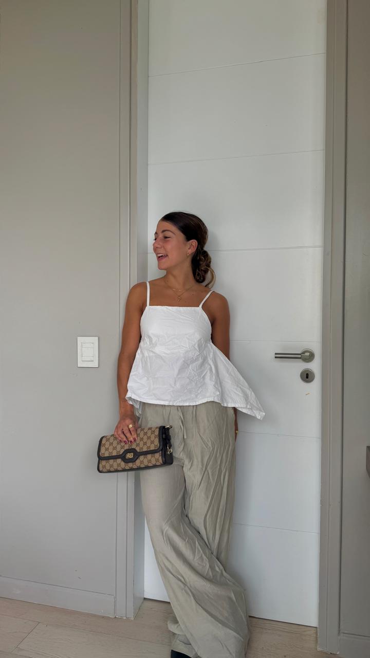 Pantalón largo confeccionado en bambula liviana, con textura suave y caída natural. Su diseño relajado y recto lo convierte en una prenda infalible para los días cálidos. La cintura cuenta con elástico y cordón ajustable en la misma tela base, asegurando confort y calce adaptable. Posee bolsillos laterales que suman funcionalidad sin perder estilo.