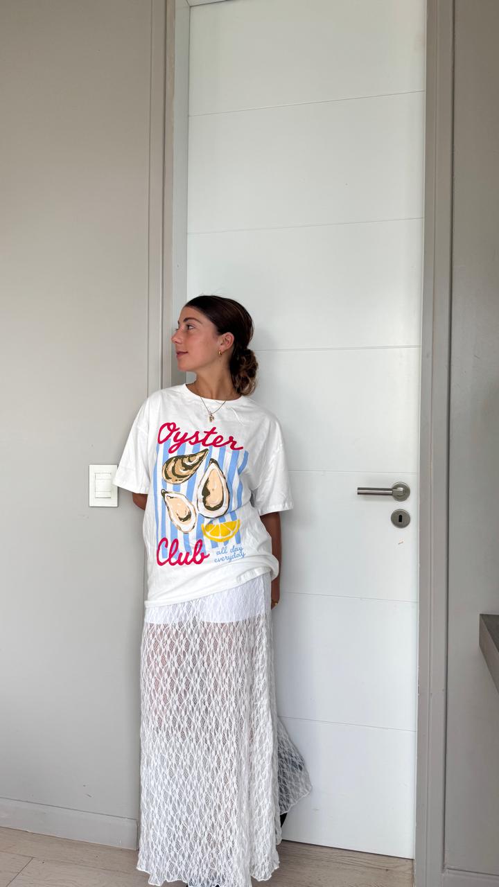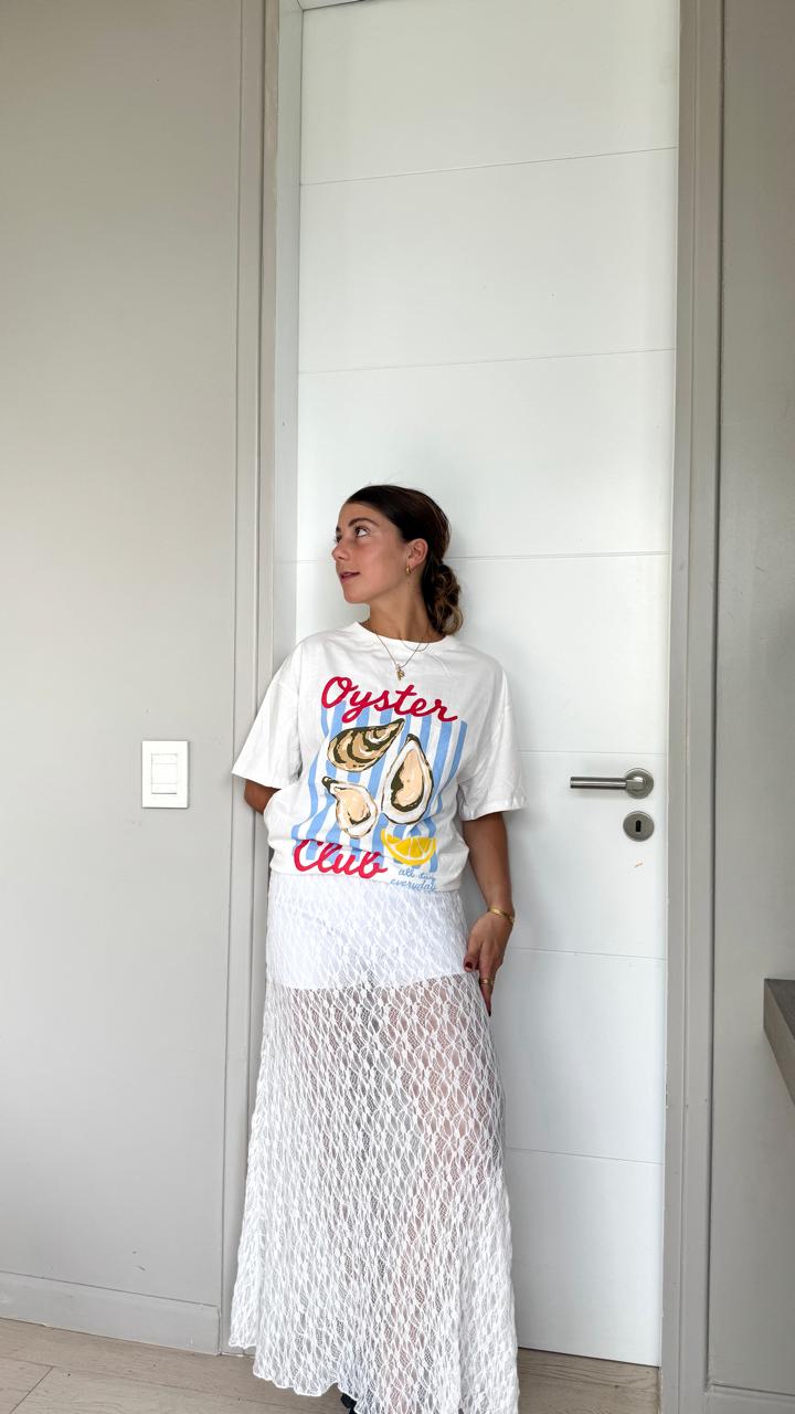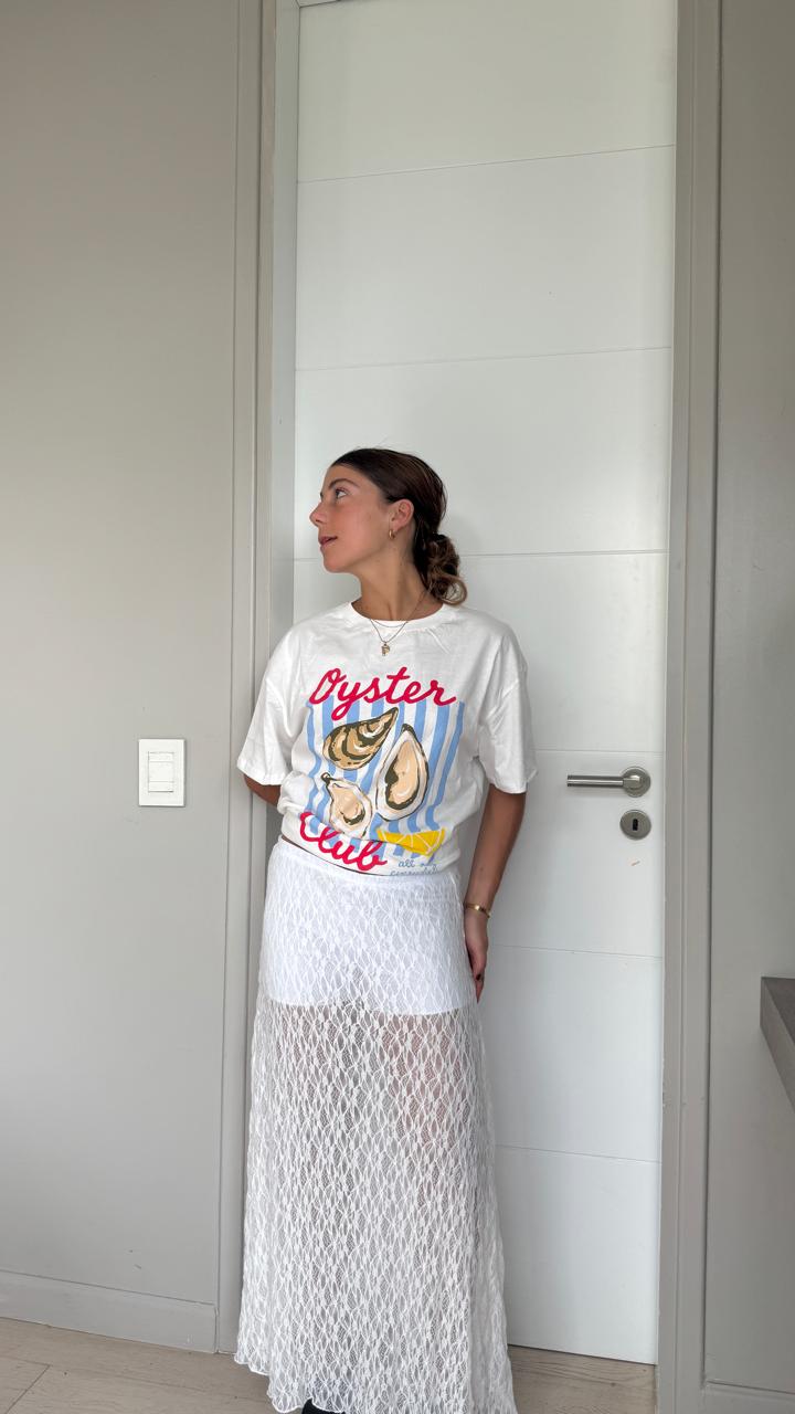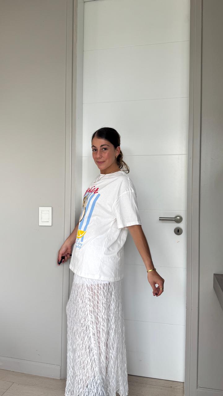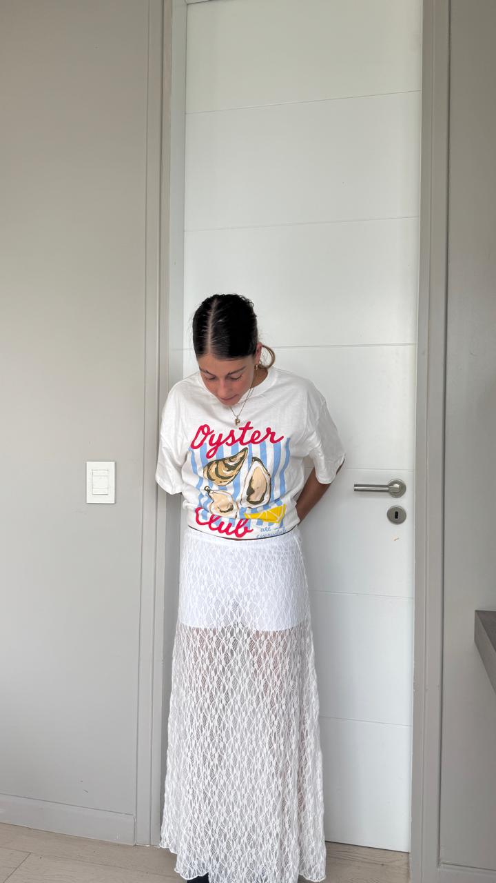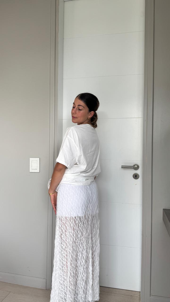 El encaje tiene un dibujo elegante y moderno, ideal para elevar cualquier look tanto de día como de noche. Su largo estiliza la figura y permite combinarla con tops básicos, bodys o prendas más elaboradas para un outfit sofisticado.